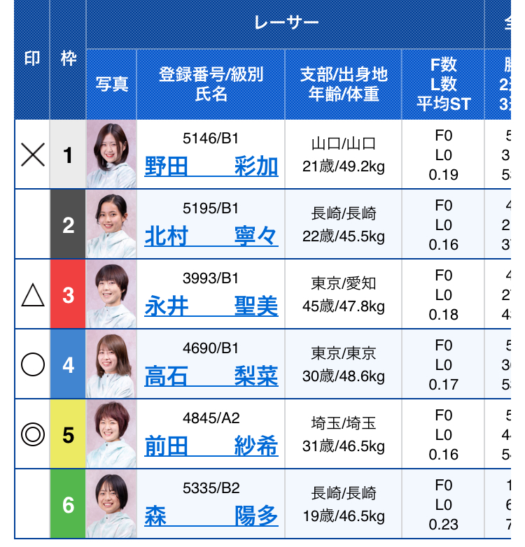 | ⑤ | 145* | ⑥ | 453* | ⑦ | 456^ | ⑧ | 163* |