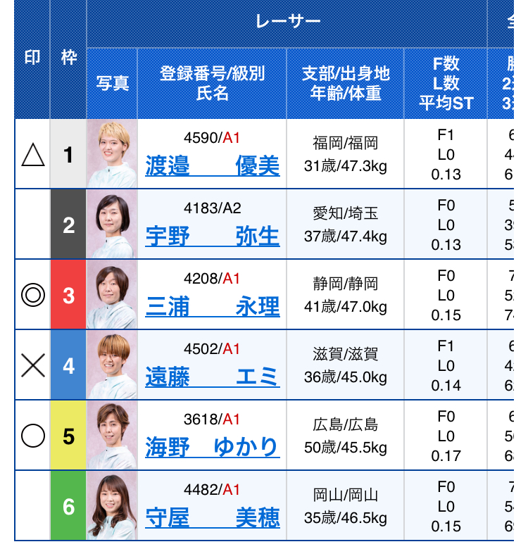 | ⑤ | 152* | ⑥ | 146^ | ⑦ | 145* | ⑧ | 143* |