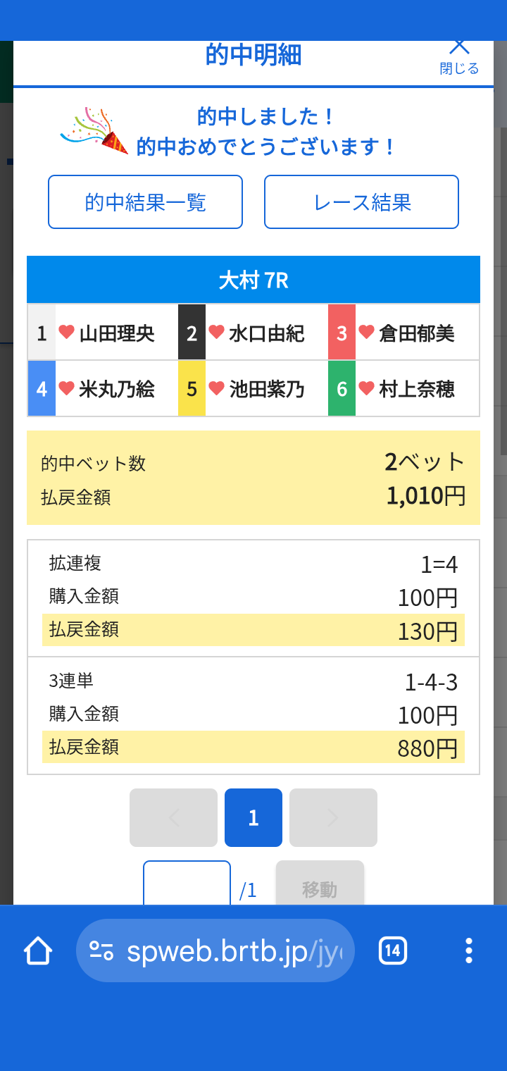 - ⇒⑪11R3連単 1-5-3 ¥4,810 15 3連複 1=3=5 ¥770 3⭕ --