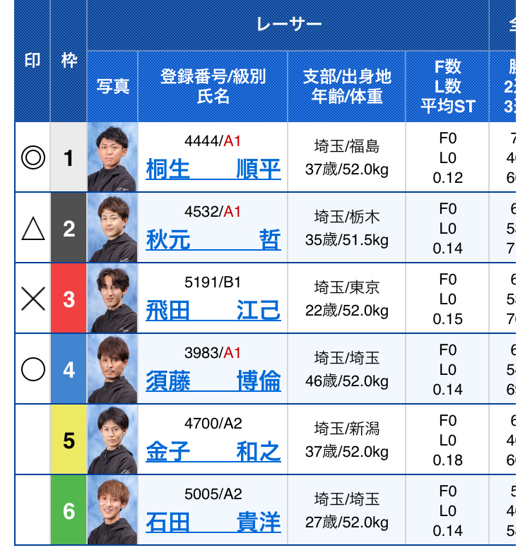 | ⑨ | 421^ | ⑩ | 321^ | ⑪ | 416* | ⑫ | 351^ |