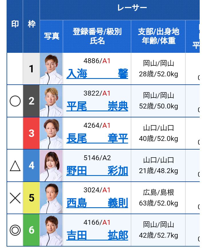 | ⑤ | 145* | ⑥ | 453* | ⑦ | 456^ | ⑧ | 163* |