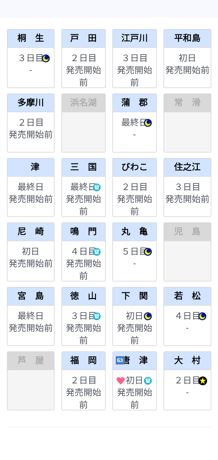 | ⑨ | 146* | ⑩ | 251^ | ⑪ | 142* | ⑫ | 136^ |