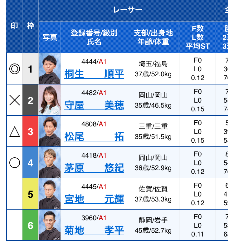 【児島ボート G1児島キングカップ準優勝戦12R】桐生順平、守屋美穂らオーシャンC出場アウト
