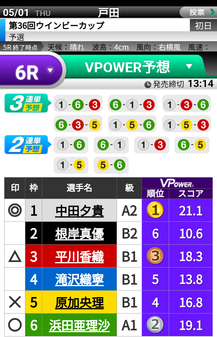- ⇨野田⑤3連単 264 1,390円 4 --